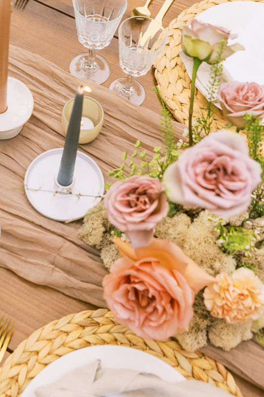 Think beautiful flowers, soft textures, and warm lighting — perfect for giving your table a little touch of natural luxury. Big statement arrangements or tiny bud vases, whatever you fancy!
